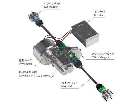 In-Wheel Motor System(see here for details) and Compact EV Chassis Model