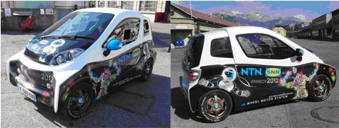 Two-seater Compact EV Equipped with NTN's In-Wheel Motor(see here for details)