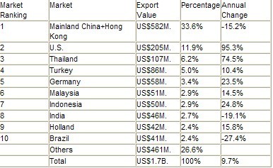 Taiwan’s Major Export Destinations for Machine Tools (Jan.-May 2012)