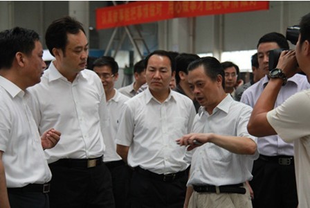 Recently, Zhang Wenxiong, member of Hunan Provincial Party Standing Committee and secretary of Working Committee For Chang-Zhu-Tan Pilot Site visited Hunan Yuhuan Tongxin CNC Machine Tool Co., Ltd. for investigation. In the picture showed above, Zhang Wenxiong (2nd L),chairman of Hunan Yuhuan Tongxin CNC Machine Tool, was introducing about the company situation to Zhang (1st R).