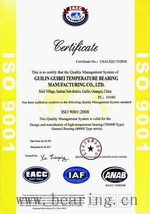 Guibei High Temperature Bearings Manufacture Co.,Ltd Passed ISO9001:2008 Quality Management System Certification(pic)