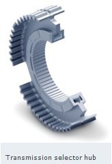 Selector hubs in transmissions: With its new selector hub made of sheet metal for example, Schaeffler can now facilitate reductions in weight of up to 25 percent compared with a conventional solid sintered metal version. The new two-part design comprising geometrically-compatible sheet metal half shells can even transmit higher torque than sintered components after optimization of the design process.
