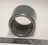 Oil-impregnated sintered bearing that features the internal layers of the bearing made of a material with a high-strength and outstanding wear-resistance, and the outer layers made of a high-strength structural material, in what is the world's first double-molding method*. * Double-molding method: a molding process that casts two dissimilar materials to form a single object.