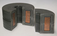 A core developed by Nippon Kagaku Yakin* that offers a high degree of design flexibility and that can be used at high currents by using injection molding of magnetic material comprising of a mixture of amorphous powder and resin. * Joined the NTN group in September 2011. Develops composite materials such as sintered alloys and engineering plastics, and possesses a high level of technology for metallic molds and molding processes.
