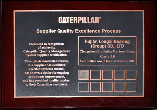 Fujian Longxi Bearing (Group) Corporation Won Caterpillar 2011 SQEP Bronze Medal