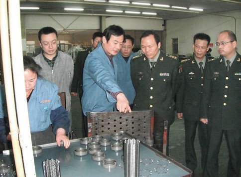 On April 2, chief representative of the Military Representative Office under General Armament Department garrisoned in a factory, Zhao Chen Jun, deputy chief representative, Chen Qi, and other three entourage visited Luoyang giant Bearing-Tech Co., Ltd. General manager of the Company, Zhang Jian, briefed the guests on the production and operation of the Company in 2012 as well as the military support products, and then guided them during the visit to the production site.