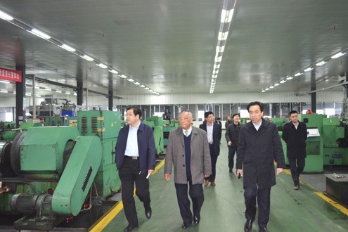 On April 5, 2013, party secretary of Rugao City, Jiang Yonghua (second from right), and Mayor Chen Xiaodong (first from left), made a special trip to Jiangsu Lixing General Steel Ball Co., Ltd. (hereinafter referred to as “JGBR”) to know about the implementation of JGBR transformation and upgrading project. Chairman and general manager of JGBR, Shi Xianggui reported to the leaders about the implementation process of the transformation and upgrading project concerning the third generation auto wheel bearing steel balls and high-speed and high-precision CNC machine tool bearing steel balls, and the planning of research and development of high-speed rail rollers and large aircraft balls in future. Jiang Yonghua expressed the hope that based on the the tendency of economic recovery, JGBR shall speed up the pace and intensity of transformation and upgrading, expand the scale of production of new products, and cultivate new economic growth point for new development and growth.