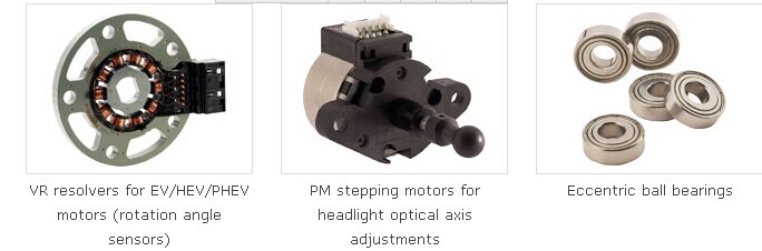 A VR resolver is a rotation angle sensor designed to detect the position of a motor's magnetic pole and control motor speed. This high-precision sensor features a simple design, high resolution and superior environmental resistance. Consisting of a resolver stator with windings and a resolver rotor made up of only a laminated steel plate, the VR resolver detects angles based on changes in the gap between the rotor and stator. Minebea's VR resolvers are used in electronic power steering motors, ISG motors, EV/HEV/PHEV motors, brushless motors for brake systems as well as other automobile applications.
