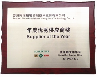 Ahno (Suzhou) Cutting Tools received "Outstanding Supplier Award" from Schaeffler (pic)