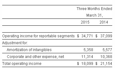 Operating income was $18.1 million for the current quarter, compared to $21.2 million for the first quarter of 2014. Operating profit as a percentage of sales was 5.3% and 6.1% in 2015 and 2014, respectively.