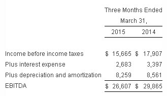 Free cash flow for the first quarter of 2015 was $18.4 million, or 191% of net income compared to $19.0 million, or 173% of net income for the first quarter of 2014.