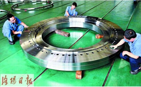 Yesterday, a large bearing for shield machine was treated against rust in the production workshop of No.2 Industrial Park of Luoyang Bearing Science & Technology Co., Ltd.