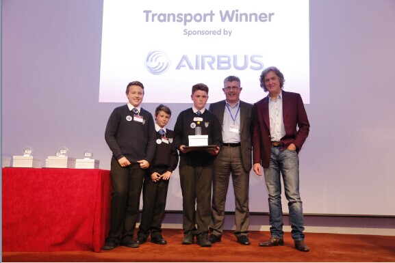 The winning team from Ysgol Glan-y-Mor comprised of three boys – Charlie, Lewis and Bradley – who called themselves the ‘A Brains’. The team developed an idea for a sensor guidance system for wheelchairs, which gives wheelchair users more independence and freedom. Despite strong competition, the team won the Transport Category Award (sponsored by Airbus), which was presented to the team by TV personality James May, who was impressed by the team’s ideas and creativity.