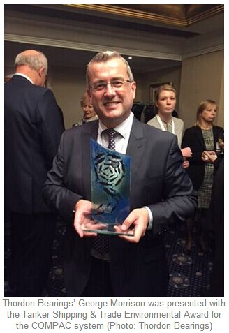COMPAC, Thordon Bearings’ seawater lubricated propeller shaft bearing system, won the Tanker Shipping & Trade Environment Award following a verdict that the system allows shipowners to cost-effectively comply with stringent marine pollution rules.