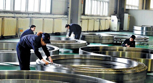 Recently at the worshop of Luoyang Bearing Science & Technology Co., Ltd, a group of technicians were testing the newly manufactured large bearings for shield machines.