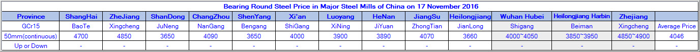 November 17.2016 Bearing Round Steel Price in Major Steel Mills of China