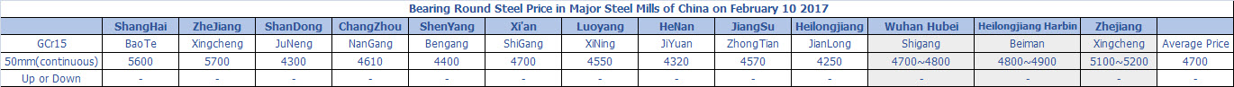 February 10.2017 Bearing Round Steel Price in Major Steel Mills of China