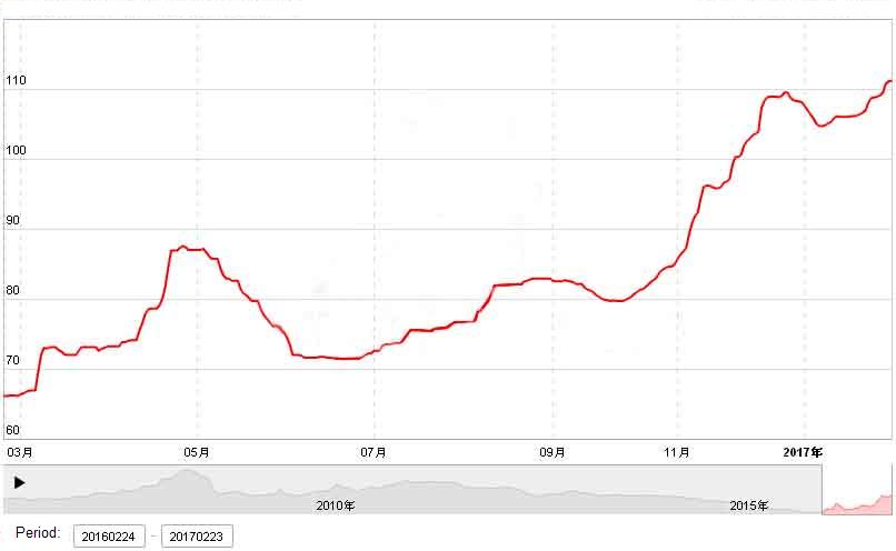 6. According to the weight of latest categories in 2010, data in each day will have a deviation of 2-3 point. To ensure the continuity of the data, the index is not adjusted and the index based on the new weight is only for tracking prices.