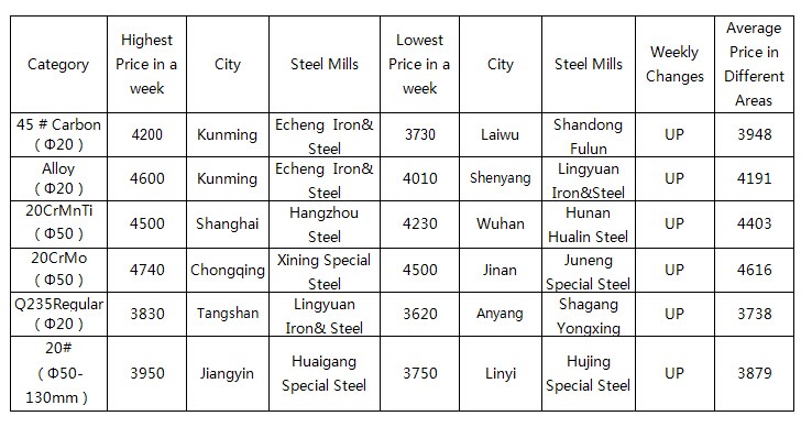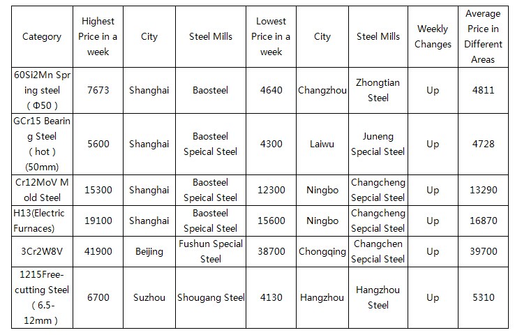 3. The prices come from the major consuming market of superior special steel, including Shanghai, Hangzhou, Changsha, Wuhan, Chongqing, Wuxi, Changzhou, Chengdu, Xi’an, Shenyang etc.