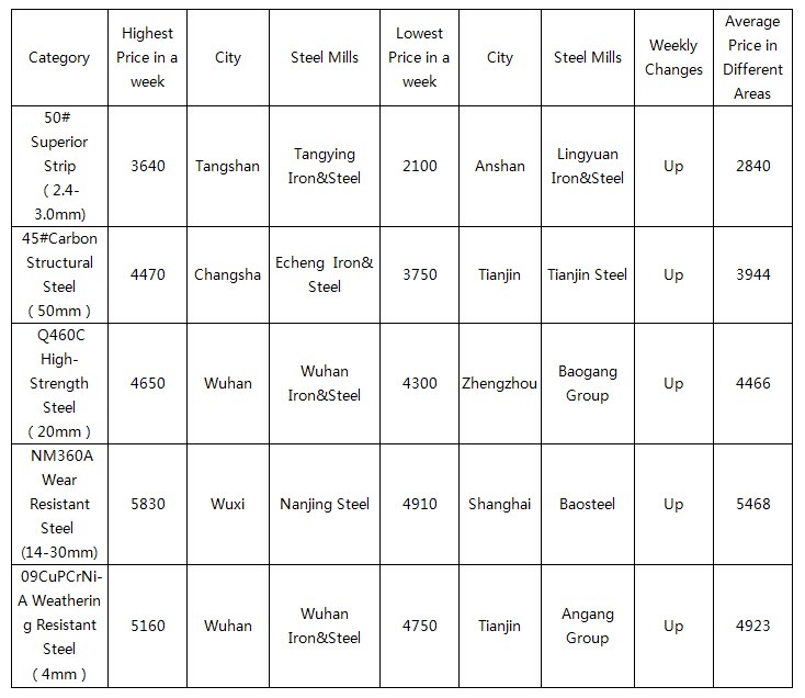 3.Price Tracking of Superior Plate and Strip in a Week(unit: RMB yuan/ ton)
