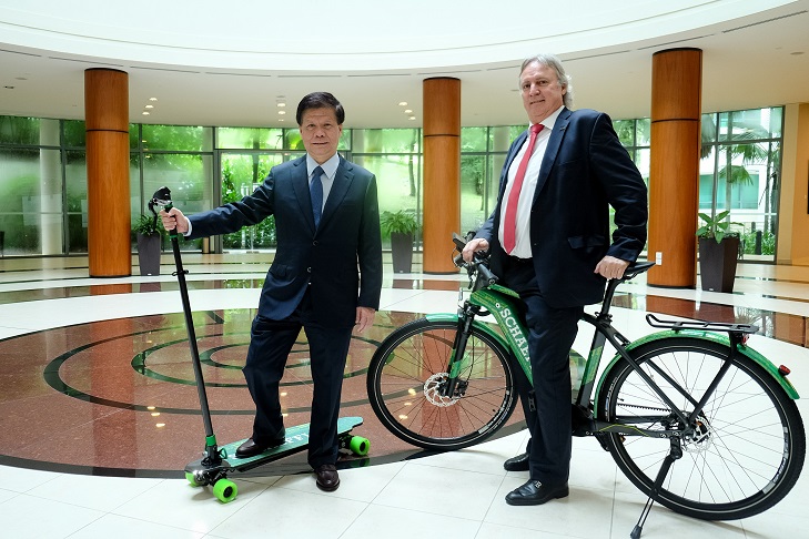Both organizations signed a master research agreement pertaining to the lab at NTU’s campus. At the signing ceremony, Schaeffler showcased some of its concepts for personal mobility, including the E-Board, an electronic skateboard-like device that comes with a control stick, and an e-bike called the Bio-Hybrid equipped with an automatic bicycle gearshift system. The Bio-Hybrid offers users the health benefits of cycling while making gearshift as easy as changing gear in a car.