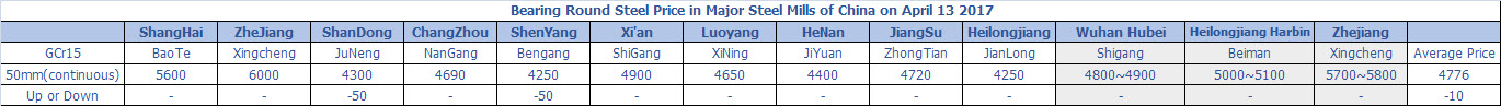 April 13.2017 Bearing Round Steel Price in Major Steel Mills of China