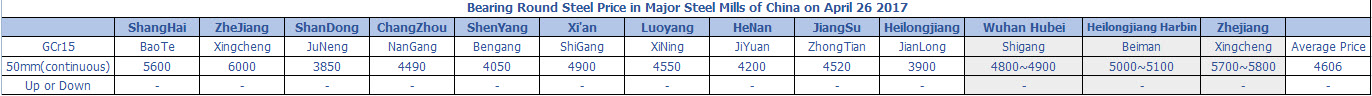 April 26.2017 Bearing Round Steel Price in Major Steel Mills of China