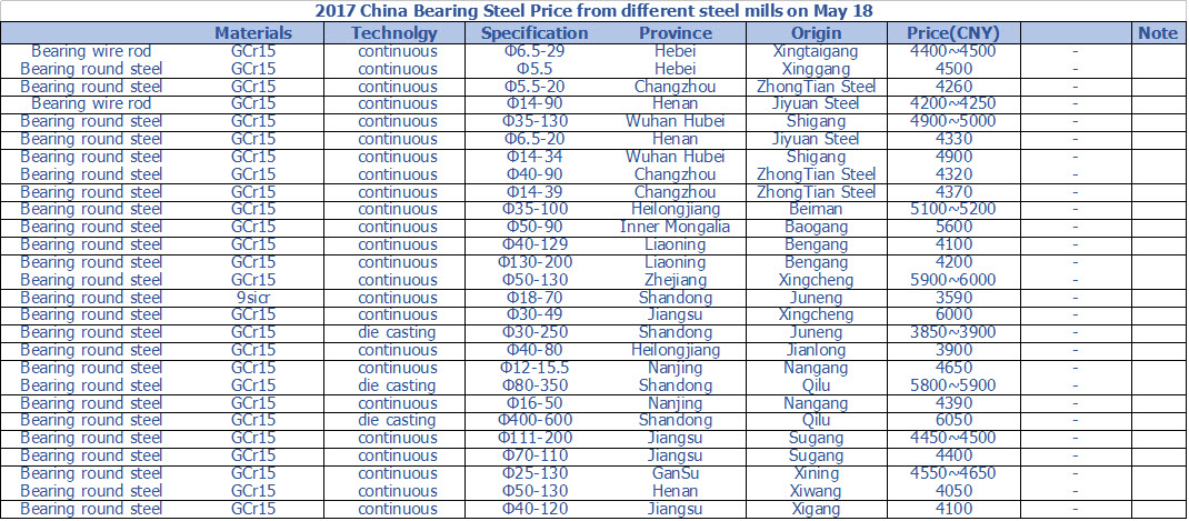 Next Aug 17 Bearing Steel Price in Different Regions of China