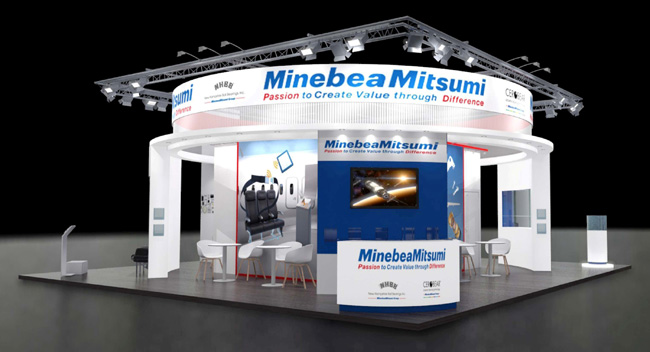 On Jan. 27, 2017, Minebea Co. Ltd., whose business focuses on machine processing such as bearings and electronic devices such as motors and sensors, etc., made Mitsumi Electric Co. Ltd., an electronic components manufacturer, a wholly-owned subsidiary to integrate our operations. We changed our company name to MinebeaMitsumi Inc. and embarked on a new start. This will be our first exhibition in the Paris Air Show as MinebeaMitsumi since this business integration. We will be exhibiting products of not only former Minebea and MITSUMI, but also from the Group sales companies in Europe (Germany, France, Italy)*2, the U.K. manufacturing subsidiary, NMB-Minebea UK Ltd. (Lincolnshire, U.K.), the North American manufacturing subsidiary, New Hampshire Ball Bearings, Inc. (New Hampshire, USA. Hereinafter, NHBB), and German manufacturing operation, CEROBEAR GmbH (Herzogenrath, Germany), and appeal products and technologies that world-widely contribute to aircraft manufacturing industry as the MinebeaMitsumi Group.