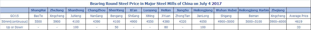July 4 2017 Bearing Round Steel Price in Major Steel Mills of China