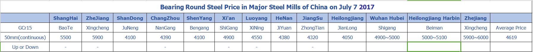 July 7 2017 Bearing Round Steel Price in Major Steel Mills of China