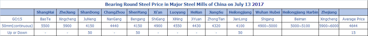 July 13 2017 Bearing Round Steel Price in Major Steel Mills of China