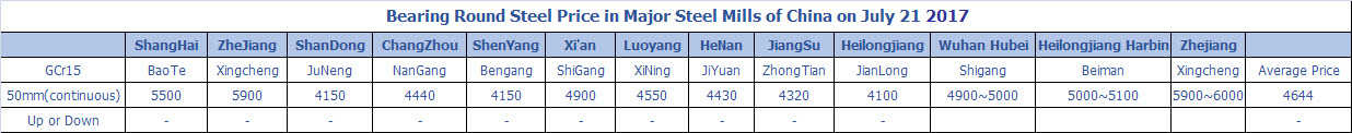 July 21 2017 Bearing Round Steel Price in Major Steel Mills of China