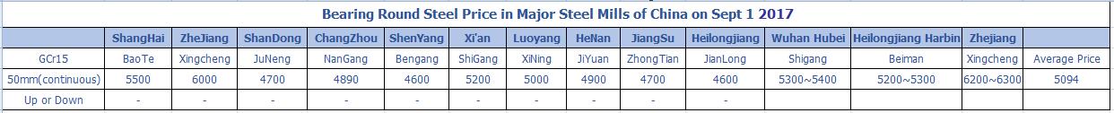 Sept 1 2017 Bearing Round Steel Price in Major Steel Mills of China