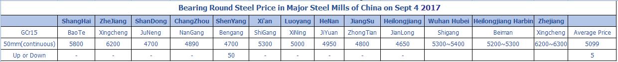 Sept 4 2017 Bearing Round Steel Price in Major Steel Mills of China