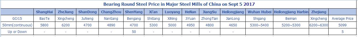 Sept 5 2017 Bearing Round Steel Price in Major Steel Mills of China