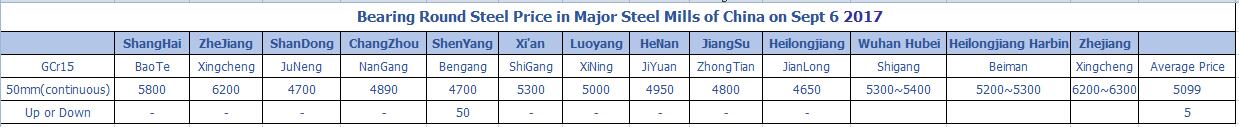 Sept 6 2017 Bearing Round Steel Price in Major Steel Mills of China