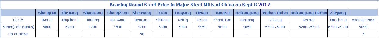 Sept 8 2017 Bearing Round Steel Price in Major Steel Mills of China