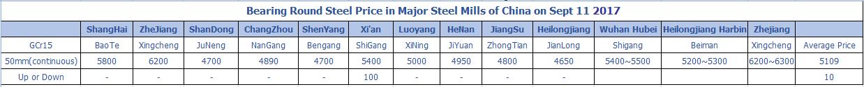 Sept 11 2017 Bearing Round Steel Price in Major Steel Mills of China