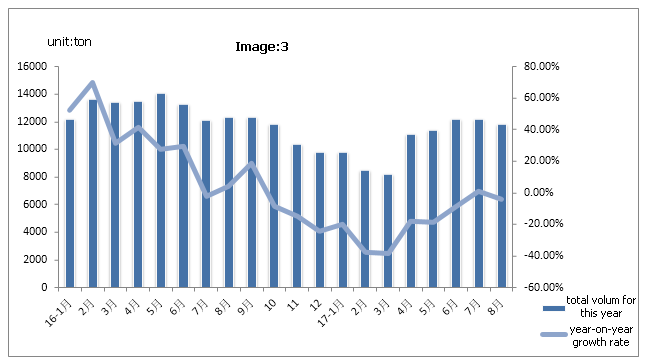 Statistics from ten major bearing steel manufacturers shows that, From Jan,2017 to Aug,2017, the exports of bearing steel was 85,229 tons, a 18.42% drop (that is 19,842 tons) than last year. The exports of bearing steel was 11,834tons, down 469 tons than last month.The volume decreased by 3.81% year-on-year and also decreased by 3.06% comparing the last year. Pic 3 shows the bearing steel export variation since 2016, now the exporters mainly centered by XINGCHENG, DAYE and DONGTE ,And XINCHENG contributes most of the volume with 11,085tons. At present domestic prices continue to rise sharply, export pressures are on the high side, steel mills continue to shrink the volume of foreign trade, and later domestic exports may decline.
