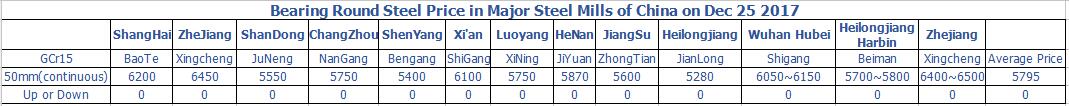 Dec 25 2017 Bearing Round Steel Price in Major Steel Mills of China