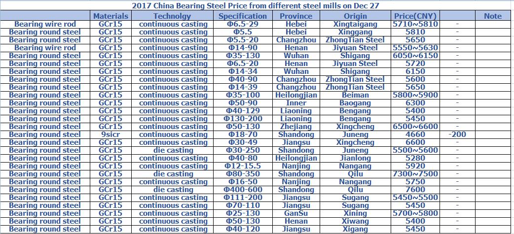 2017 China Bearing Steel Price from different steel mills on Dec 27