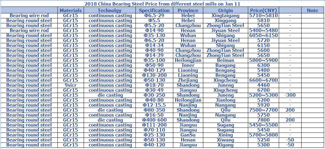2018 China Bearing Steel Price from different steel mills on Jan 11