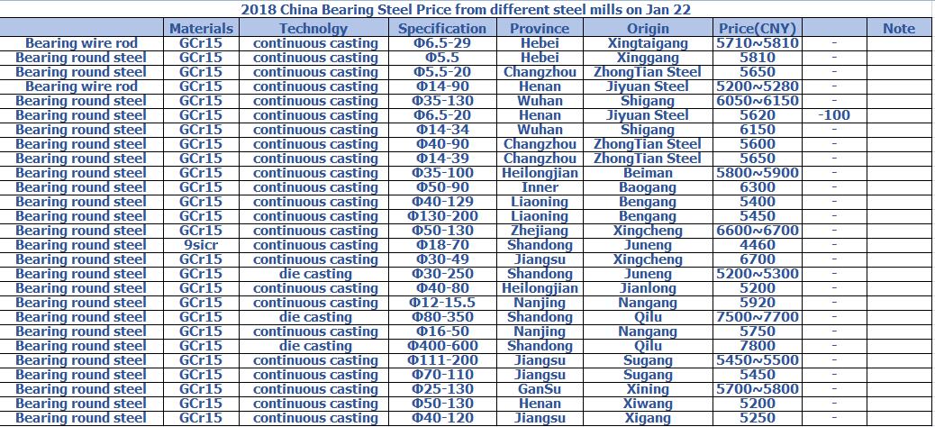 2018 China Bearing Steel Price from different steel mills on Jan 22