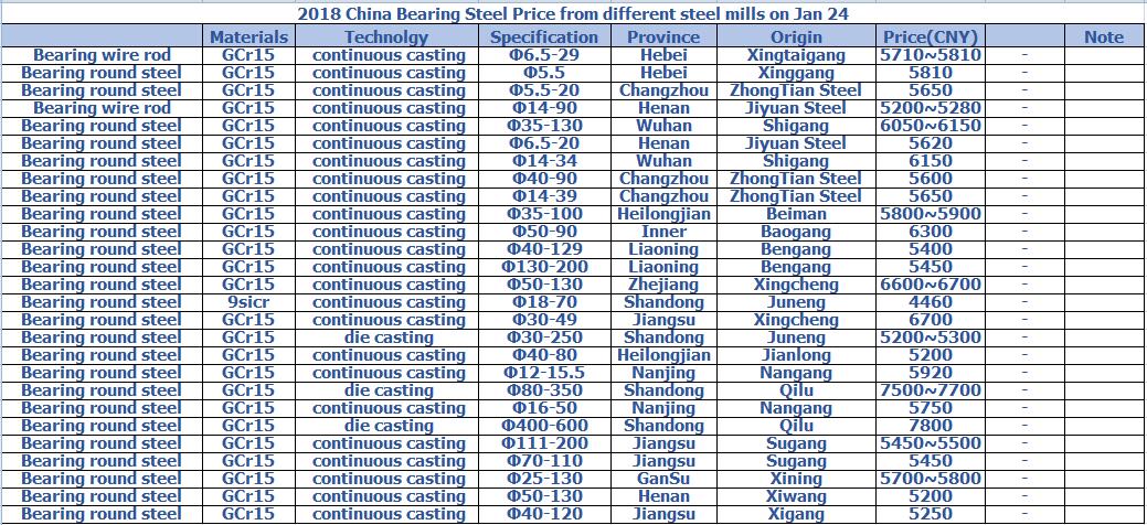 2018 China Bearing Steel Price from different steel mills on Jan 24