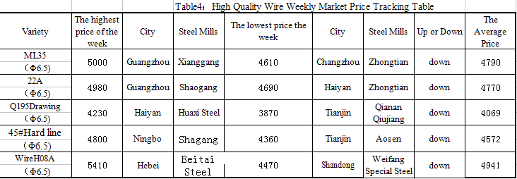 2. Price Tracking of Superior Wire Rod in a Week(unit: RMB yuan/ ton)