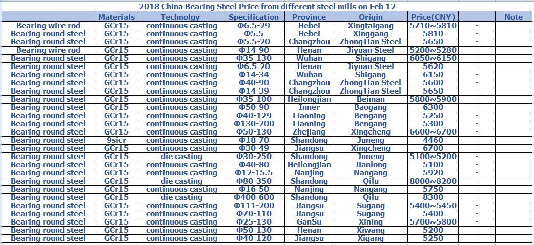 2018 China Bearing Steel Price from different steel mills on Feb 12