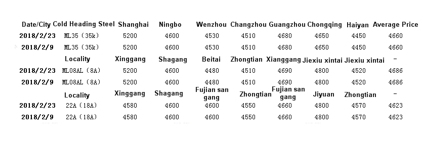 Price Adjustment of Premium Steel Mills(2018.2.10~2018.2.23)