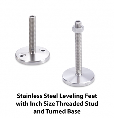 JW Winco, Inc., A Ganter Company, now offers Stainless Steel Leveling Feet, with inch size threaded stud and turned base. Bases are available with Mounting Bores (GN 23) and without Mounting Bores (GN 21). The leveling feet, which are RoHS compliant, are delivered assembled and cannot be disassembled. The base is stainless steel, European Standard No. 1.4301 (AISI 304), while the threaded stud is stainless steel, European Standard No. 1.4305 (AISI 303) and the hex nut is stainless steel, European Standard No. 1.4305 (AISI 304, ISO 4032). The leveling feet also feature an inlaid non-skid pad.