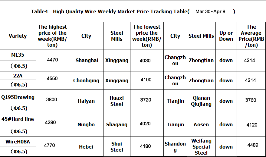 2. Price Tracking of Superior Wire Rod in a Week(unit: RMB yuan/ ton)